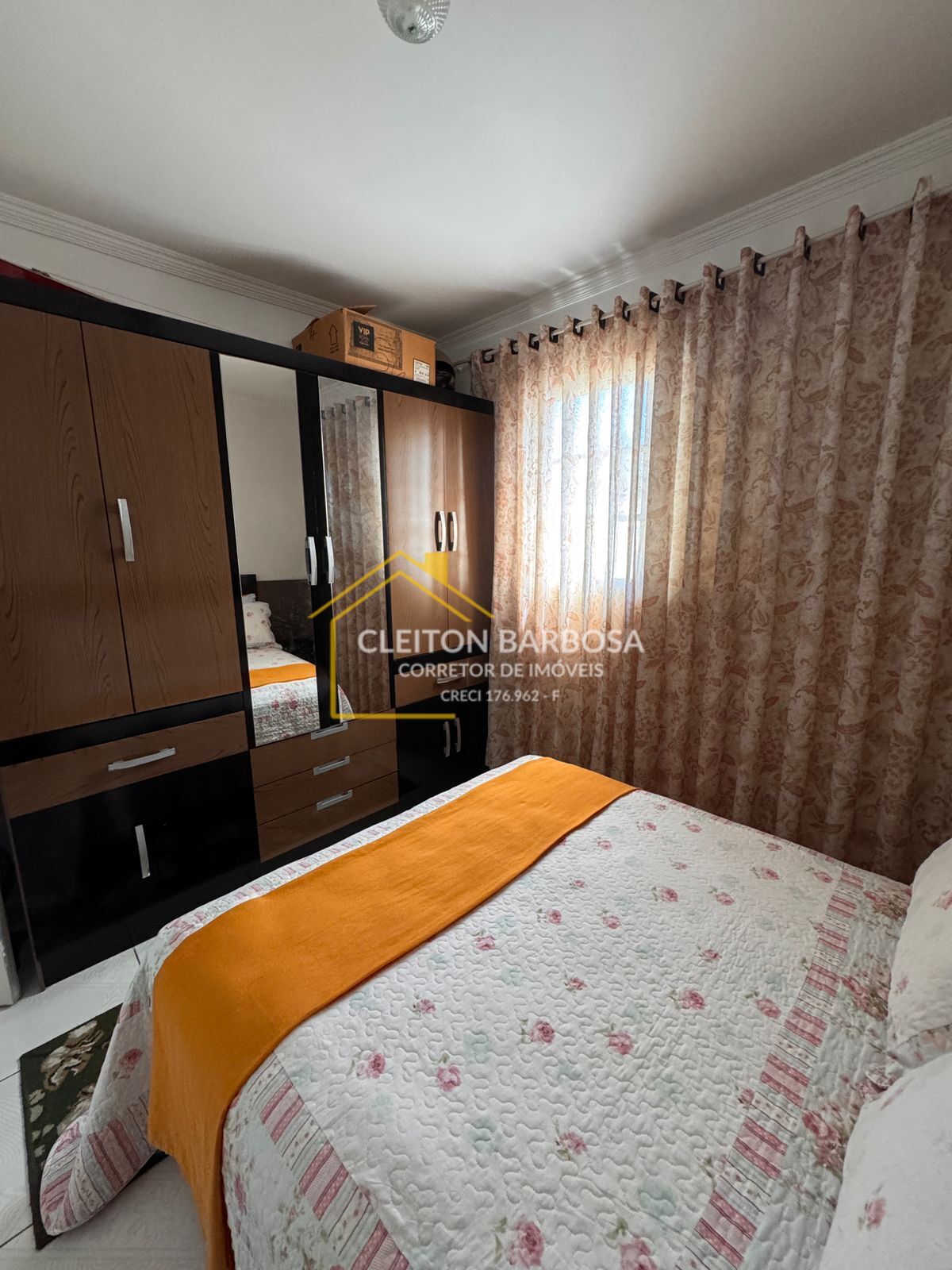 Encontra-se em um condomínio protegido por muros.